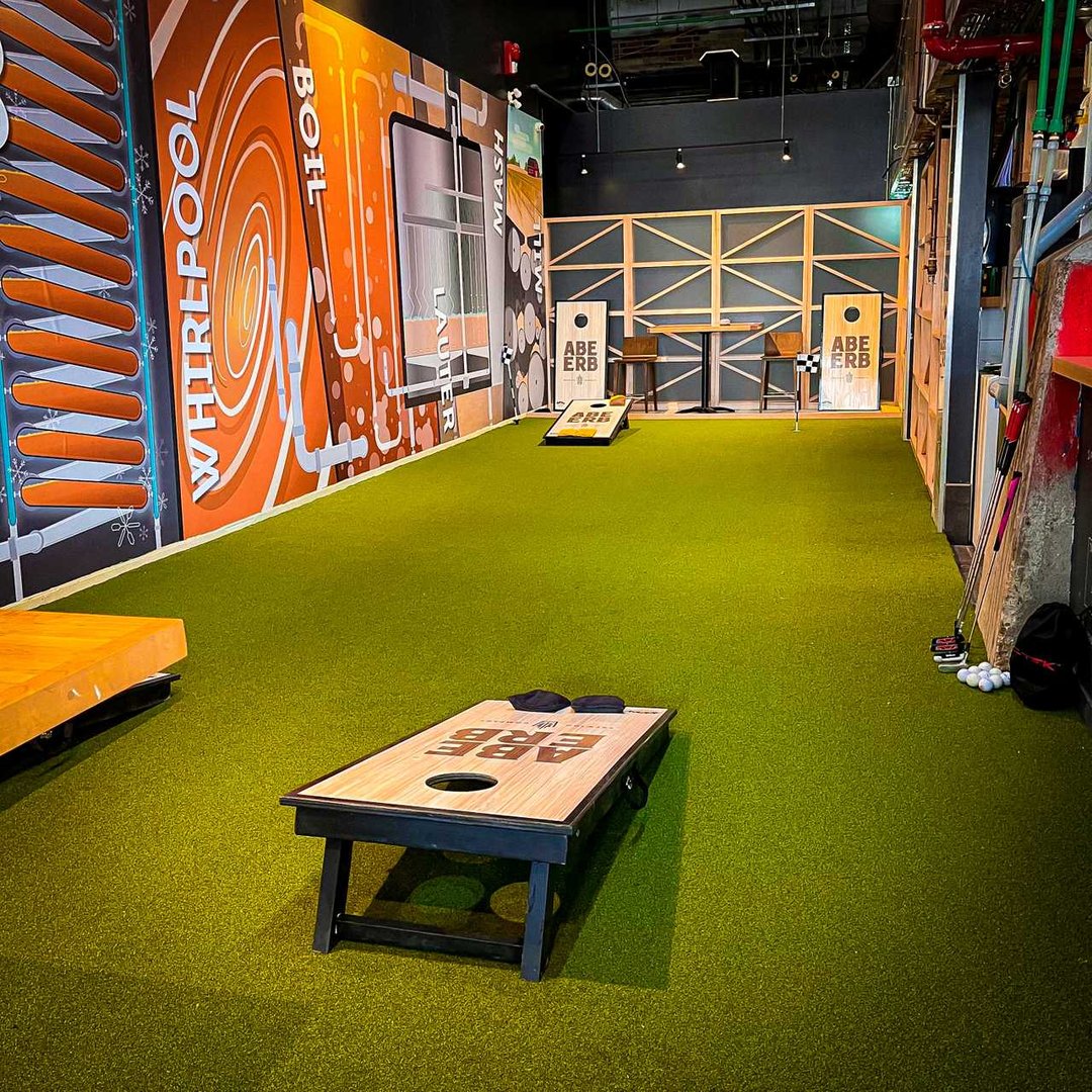 Games Area – A lively spot featuring mini golf, bocce ball, and cornhole—perfect for guests to relax and have fun. Seats up to 14 or holds up to 20 standing and playing.